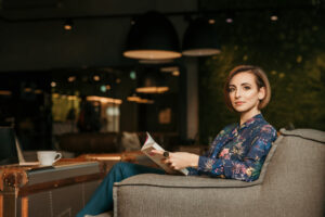Ogromną rolę odegrały detale: miękkie tkaniny, ciepłe światło wpadające przez okno, książki i notatki w tle. Każdy element był przemyślany, a nic nie było przypadkowe ani przesadzone. Współczesna fotografia wizerunkowa polega na równowadze między estetyką a prawdą.